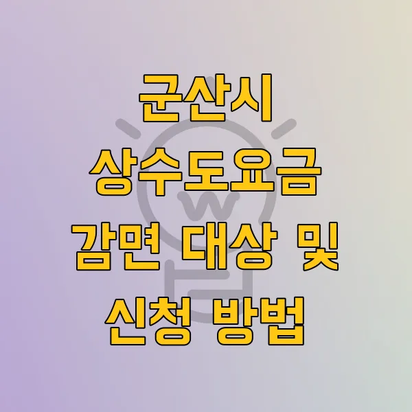 군산 시민 여러분, 혹시 매달 나가는 상수도 요금에 부담을 느끼고 계시진 않나요? 군산시에서는 여러분의 생활 안정을 위해 다양한 상수도요금 감면 혜택을 제공하고 있습니다! 자격 요건만 된다면 누구든지 신청 가능하니, 이번 기회에 꼼꼼히 확인하시고 혜택 꼭 받아 가세요!