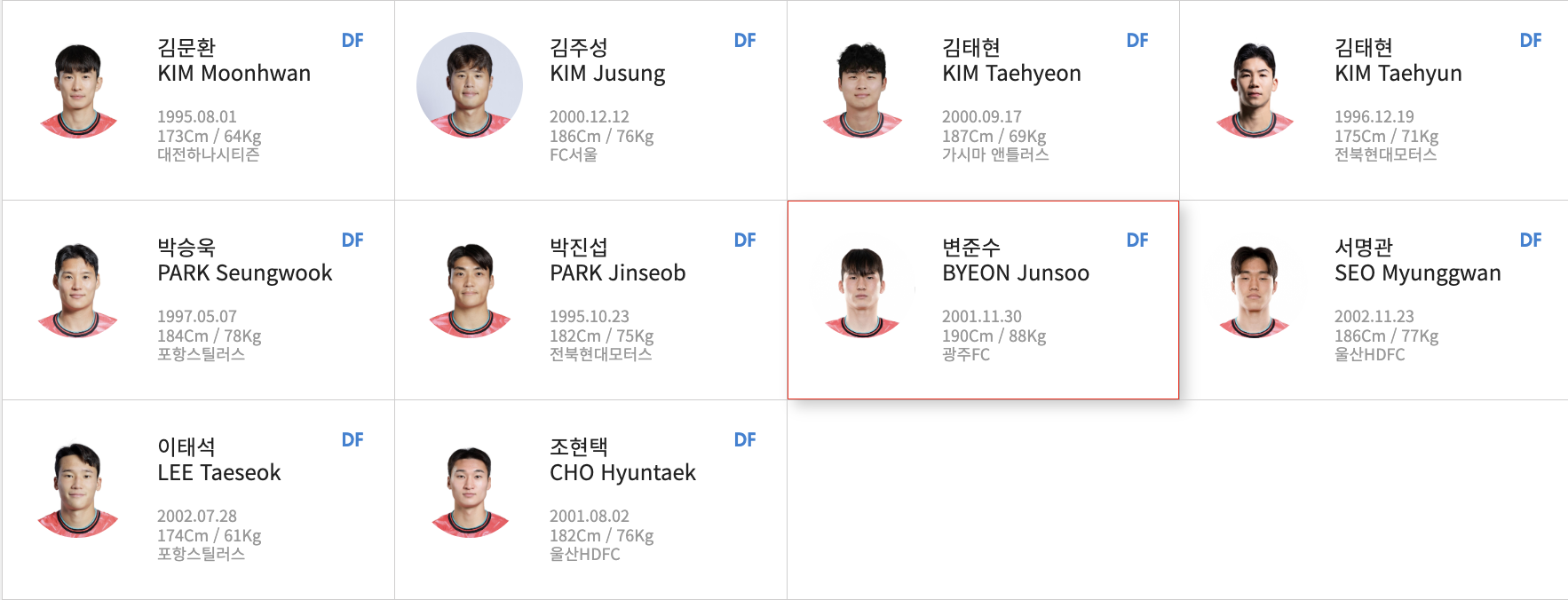- DF: 김주성(FC서울) - 박진섭(전북현대) - 박승욱(포항스틸러스) 홍명보 감독이 꾸준히 신뢰하는 쓰리백 조합입니다. 박진섭을 중심으로 좌우 센터백들이 얼마나 안정적인 수비 블록을 형성하고, 빌드업의 시발점 역할을 해줄 수 있느냐가 매우 중요합니다.