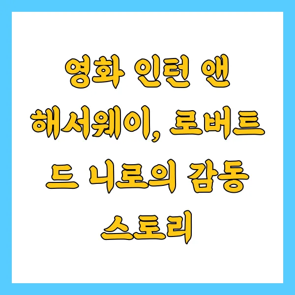 줄거리는 간단합니다. 70세 은퇴자 벤 휘태커(로버트 드 니로)는 은퇴 후 삶의 공허함을 채우기 위해 시니어 인턴 프로그램에 참여합니다. 그리고 그는 우연히 젊은 CEO 줄스 오스틴(앤 해서웨이)이 운영하는 온라인 패션 회사에 배정됩니다. 처음에는 벤의 존재를 어색해하던 줄스와 직원들이지만, 벤의 성실함과 따뜻한 인간미, 그리고 풍부한 경험에서 우러나오는 지혜에 감탄하며 점차 그를 신뢰하게 됩니다. 줄스는 회사 경영과 육아 사이에서 힘겨워하고, 벤은 그런 줄스에게 든든한 조언자이자 친구가 되어줍니다. 이 과정에서 벤은 삶의 활력을 되찾고, 줄스는 진정한 리더로 성장합니다. 서로 다른 세대, 다른 삶을 살아온 두 사람이 만나 서로에게 긍정적인 영향을 주고받는 과정은 관객들에게 깊은 감동과 여운을 남깁니다. 특히 벤의 명대사 "경험은 절대 늙지 않는다(Experience never gets old)"는 영화의 주제를 관통하는 메시지로, 세대를 초월하는 공감을 불러일으킵니다.
