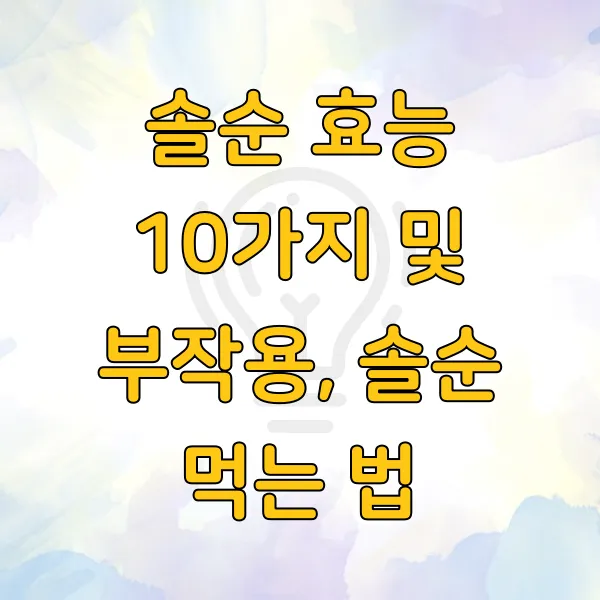 싱그러운 봄기운을 가득 머금은 소나무의 어린 새순, 솔순! 면역력 증진, 피부 미용, 항염 작용 등 놀라운 효능으로 건강을 지켜주는 자연의 선물입니다. 하지만, 잘못 섭취하면 부작용이 발생할 수도 있다는 사실! 알고 계셨나요? 이 글에서는 솔순의 10가지 효능과 부작용, 그리고 솔순을 맛있고 건강하게 즐기는 다양한 방법까지, 솔순에 대한 모든 것을 속속들이 파헤쳐 보겠습니다. 솔순차, 솔순주, 솔순 효소 등 다채로운 활용법을 통해 건강한 삶을 가꿔보세요!