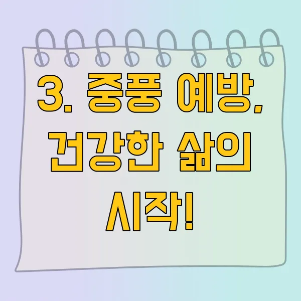 중풍은 우리 삶을 송두리째 흔들 수 있는 무서운 질병이지만, 꾸준한 예방과 관리를 통해 충분히 예방할 수 있습니다. 오늘부터 건강한 생활습관을 실천하고 정기적인 건강검진을 통해 중풍으로부터 소중한 건강을 지켜나가세요! 당신의 건강, 당신의 선택에 달려 있습니다!